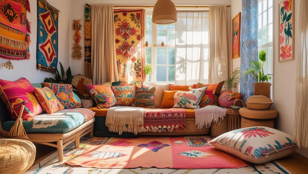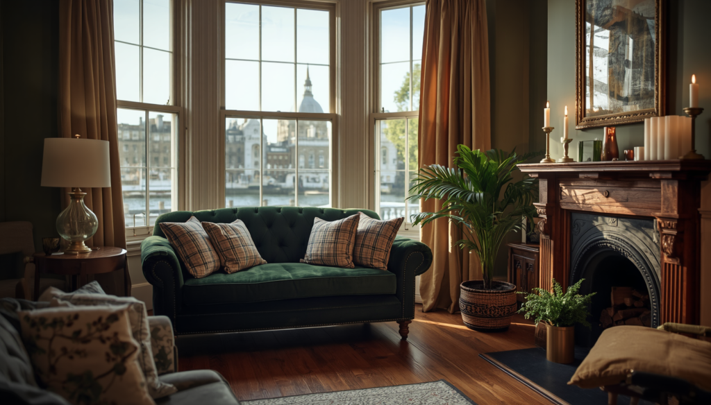 Britain has always absorbed the world’s best ideas. This style embraces global textiles, layered pattern, trailing plants, and the joyful chaos of a maximalist bookshelf.